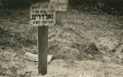The choice of wood for a tombstone may be due to preference as wood was a traditional Polish medium for construction, availability in resources, or simply to lack of affluence of the deceased or the community. The slender stylistic preference of the wooden tombstone, however, offered unique opportunities for the tombstone engraver/painter to accommodate the inscription in ways uncommon to stone inscriptions. To date, less than a dozen photographs exist of wooden tombstones in Poland before 1939. Yet this meagre collection still serves as a vital witness to a once distinctively common practice of marking the graves of Jews in Poland a practice still apparentlly remembered in the ghettos during the Holocaust as evidenced by (at present) one remaining photograph from Radom, dated 1941 (Fig. 11). What is legible of this inscription reads: "Here lies the married Ruth (?) Henda [-----] daughter of R. Szlomo, may his light shine, Goldring. She died 16th Tevet 5701 (1941)."