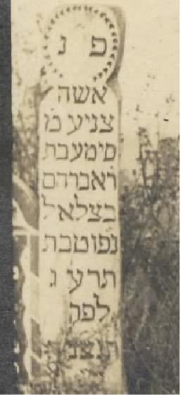 "Here lies a modest woman, the married Sima daughter of R. Abraham Becalel. She died 7th Tevet 5673 (1913) as the abbreviated era. May her soul be bound in the bond of everlasting life."