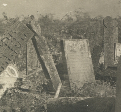 With a few exceptions, small-town Jewish cemeteries in Poland 'exist' only on old maps and old photographs. Their rich artistic heritage has been lost, or survives only in fragmentary or merely symbolic form, e.g. walled cemeteries behind whose walls practically nothing is to be found. The most interesting and impressive tombstones (matzevot) have disappeared. They all met the same fate. The Germans used them to cobble roads and pavements, to reinforce escarpments and clad the beds and banks of rivers. They were used in the construction of flights of stairs and farmers used them as sandstone knife-sharpeners. Despite these years of destruction, tens of thousands of the most beautiful stone tombstones managed to survive in Poland, but not one single wooden one has been preserved.