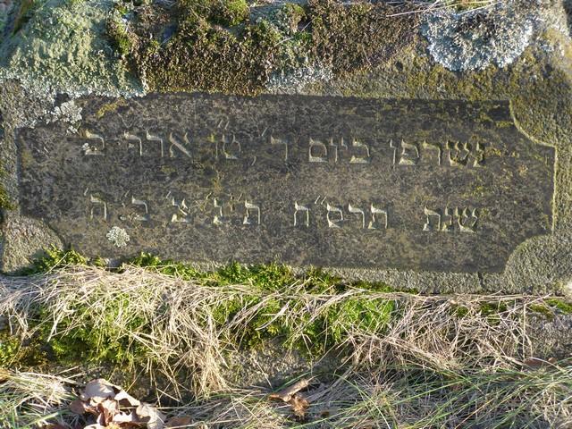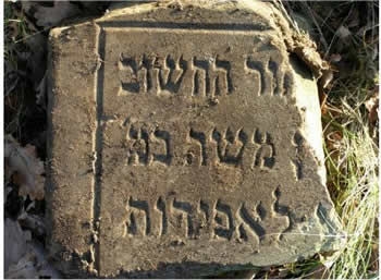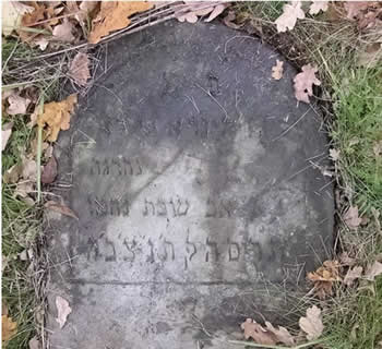 (Image 11 Fragment of tombstone of Blume Lapidus: "the praiseworthy, Ms. Bluma daughter of Nathan Nata Lapidot. She was born 17 Tamuz 5644 [10 July 1884]; She was killed by the hand of murderers Thursday 21 Sivan 5666 [14 June 1906] as the abbreviated era. May her soul be bound in the bond of everlasting life.")