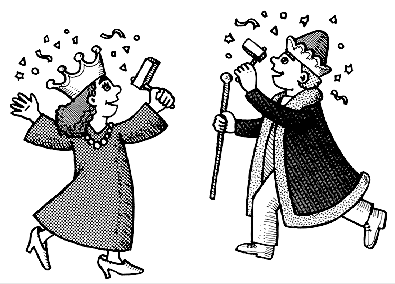 She couldn't find a crown that would stay on my head and finally resorted to taping a rubber band on one she found in a costume shop that was obviously made to fit Humpty Dumpty. The only gown that would cover my bloated middle was one of her old maternity dresses. "Queens are supposed to wear velvet robes," I told my mother. "Not cotton prints with expandable waists."