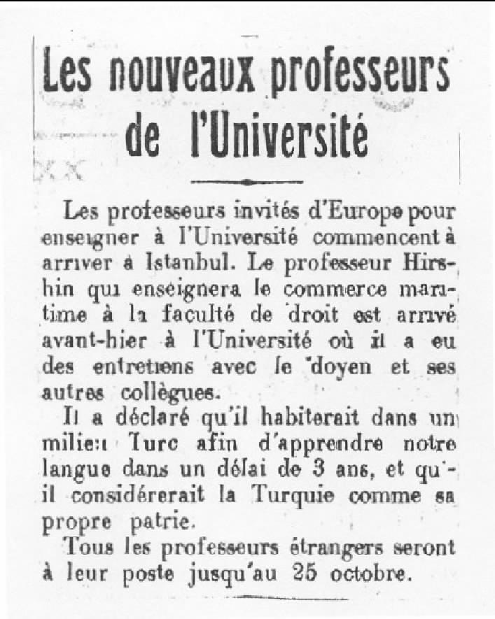 New professors invited from Europe to teach at the University have started to arrive in Istanbul. Professor Hirsch who will teach