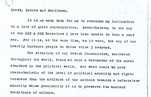 Excerpt from Einstein's address to the ORT-OSE dinner in London on October 29, 19305