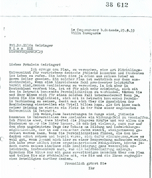 I am formulating a plan to try to establish a university for refugees, i.e., exiled German Jewish docents and students. You have