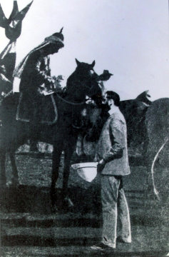 “At nine o’clock a commotion on the highway, which was lined with a ‘mixed multitude’ of Arab beggars, womenfolk, children and horsemen, heralded the approach of the Imperial party. Fierce looking Turkish cavalry galloped by at breakneck speed, hurling threatening glares and brandishing still more threatening rifles at the crowd. Then the advance couriers of the Emperor. And riding among a grey-clad group, including several ladies, the Kaiser himself.