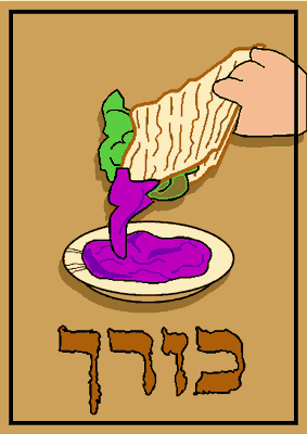 parts and with bitter herbs is formed a sandwich. As we read in Haggadah (= narrative, corresponding to the book that is read in the