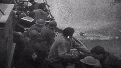 Routed British soldiers scramble aboard the last vessels bound westward for the British Isles, thinking of nothing else than to get out of this hell and saving their skins. The whole scene gives the wharf the aspect of the Parisian "Galleries Lafayette" during the year-end sales.