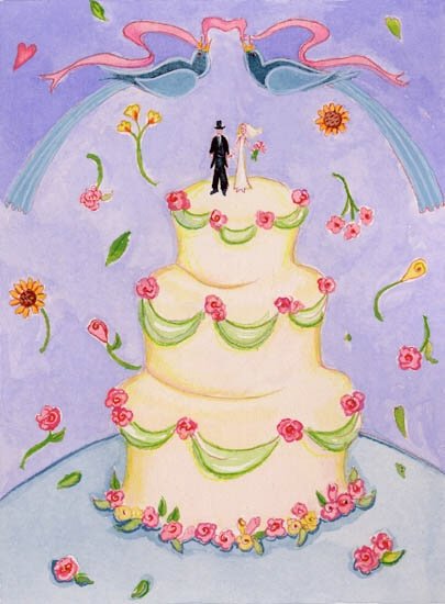 Bissel problem: The wedding is a Sunday brunch. But Jewish law forbids work on the Sabbath, which starts at sun-down Friday night and runs until sun-down Saturday. So it's agreed that we will be cleaned up and out of the temple by sun-down Friday (the rabbi has a chart with the exact time.) Esther has chosen a menu that can be prepared in advance on Friday, and most of the food can either be reheated or just assembled Sunday morning. Except the cake.