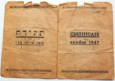 The ship they boarded, Exodus 1947, carried Jewish emigrants from France on July 11, 1947, and headed to the British mandate of Palestine. Most of the emigrants were Holocaust survivor refugees with no legal immigration certificates to Palestine. When the British Royal Navy seized the ship, passengers were deported back to Europe.