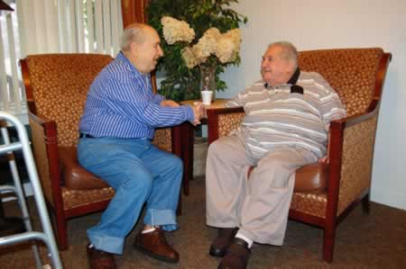 As lunch dishes are cleared, the two make their way into the chat room to bask in the warmth of the fireplace. They continue their conversation, realizing before they say goodbye, they are neighbors, residents of the same campus, and at anytime, at will, they can meet again with just a phone call or a short walk through a hallway or two. George wants to reciprocate and the two even discuss inviting others; seeing their smiles, anyone can tell they are no longer strangers with stories untold - but two men form a time in history when even if they had crossed paths so many years ago, would never have imagined they would someday be destined to meet as residents of the same senior campus; Menorah Park Center for Senior Living.