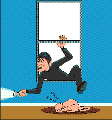 One policeman pushed the front door open and went inside. I expected the alarm to go off but there was silence. I tried to switch the lights on but there was no electricity. I knew that the alarm had a reserve power supply and that the alarm should have gone off anyway, but there was still silence. In the light of the flashlight of the policeman we saw that the robbers had destroyed the alarm and in the process had short-circuited the electricity. The place was a total mess. Everything was just thrown on the floor and had been trampled on. I then noticed that they had come in through the door as the doorframe had been split.