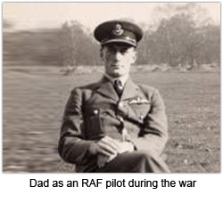 In England, the two brothers did what they could to learn English and complete their education. They attended a London high school and became friendly with the headmaster, a childless Englishman who agreed to adopt my father when his student visa ran out after graduation in 1936. This allowed Dad to stay in England and get a job. Unfortunately, with no close adult supervision and a fierce independent streak - no doubt due to his rebellion at being sent away from his family at age 6 - Dad got into trouble. In late 1938, his mother sent the remainder of the family fortune to England, which was to be used to care for the three siblings for the duration of the war that everyone knew was imminent. Somehow, Dad (now 19 years old and working in advertising), got his hands on the money and gambled away the entire sum. With not enough to support himself, he resorted to petty theft, and was eventually arrested. During the summer of 1939, Dad was sentenced to three months in prison. On September 1, the day that Germany invaded Poland, many British prisoners were released, since cells would be needed for enemy aliens once war was declared. Ironically, my father was released, even though he was one of the enemy aliens in question. Taking the train back to London, he was given strict instructions to report to a police station. Dad stole the identity of a London schoolmate who had died. But Dad - whose name was Georg Franz Hein - never reported to the London police station, and a manhunt was organized. Instead, Dad obtained identity documents for a London schoolmate who had died several years earlier, a boy named Peter Stevens. Using those documents, Dad presented himself at an RAF recruiting station on September 3 - the day war was declared - and enlisted as Peter Stevens. So while the British police were busy searching for a potentially dangerous German named Georg Hein, Peter Stevens spent 18 months being trained as a bomber pilot. Two tips helped the police realize that Dad had joined the RAF, but they did not figure out that he had become Peter Stevens. Had they tracked him down, Dad would have been arrested and interned for the duration of the war. Dad qualified as a bomber pilot and joined a frontline squadron in April 1941. On one mission, he had to bomb his own hometown. Because he had disgraced himself by gambling away his family's money, he had lost contact with his mother and remaining aunts, uncles and cousins in Germany. It was with a very heavy heart that he dropped high explosives in the direction of his own flesh and blood.