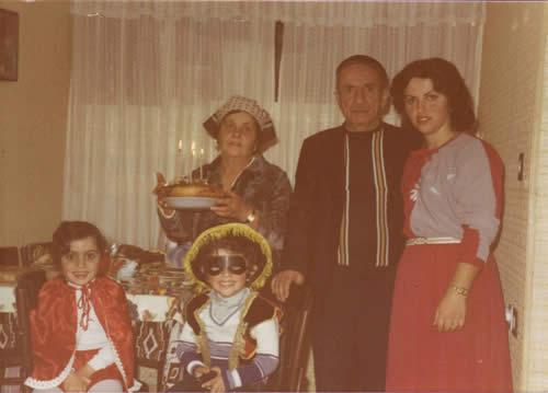 Chaim's parents, Gogutza and Soso, their daughter in law and two grandchildren at Purim