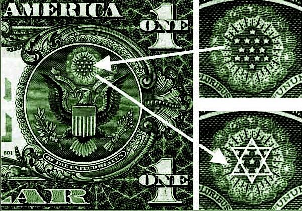 During the Bi-centennial of the United States, 1975, the United States Postal Service issued a stamp in honor of Haym Salomon. It is an unusual stamp. On the glue side of the stamp is printed in pale green letters, “Financial Hero – Businessman and broker, Haym Solomon was responsible for raising most of the money needed to finance the American Revolution and later to save the new nation from collapse.” Coincidental, to the issuance of the Haym Salomon stamp, the state of Israel issued a stamp in 1975 honoring Harry Truman, the first President to recognize the state of Israel. March 29, 1975, entered into the United States Congressional Record: “ When Morris was appointed Superintendent of Finance, he turned to Solomon for help in raising money needed to carry on the war and later to save the emerging nation from financial collapse. Solomon advanced direct loans to the government and also gave generously of his resources to pay the salaries of government officials and army officers. With frequent entries of “I sent for Haym Solomon”, Morris’ diary for the years 1781-1784 records some 75 transactions between the two men.” ~ ~ ~ ~ ~ ~ ~ ~ ~ ~ ~ ~ ~ ~ ~ ~ ~ ~ The internet is laced with half-truths both for and against Salomon. Most of the articles are shallow reflections of much deeper biases. Anti-Semites have moved Salomon to the pantheon of conspiracy hatred. They point to the symbolism of the U.S. dollar bill. Anti-Semites and Black Helicopter anti-Masonic conspiracy theorists argue that Washington came to Salomon and asked him what he wished for his great services to America. Salomon asked to Washington to incorporate Judaic-Masonic imagery into the Great Seal of America and any future currency. The conspiracy theorists assert that Salomon was a servant of the secret Rothschild – Jewish –Masonic cabal to create a one world government under Jewish control. Though there are many images to be pointed to that need explanation. One symbol is pointed out amongst all others. On the back of the dollar, on the right side above the American eagle is a circle with 13 stars arranged into a pattern. The pattern, if you connect the stars, forms a Star of David.