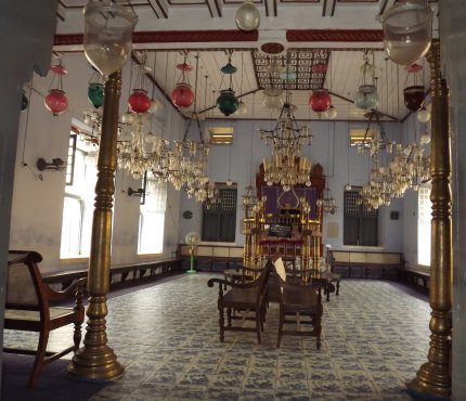 The magnificent Paradesi Synagogue in Cochin, built in 1568 is the oldest functioning synagogue in the Commonwealth. Treasures within include gold Torah crowns, ancient Belgian chandeliers, silks, carpets, Torah scrolls and others. Picture © by Author