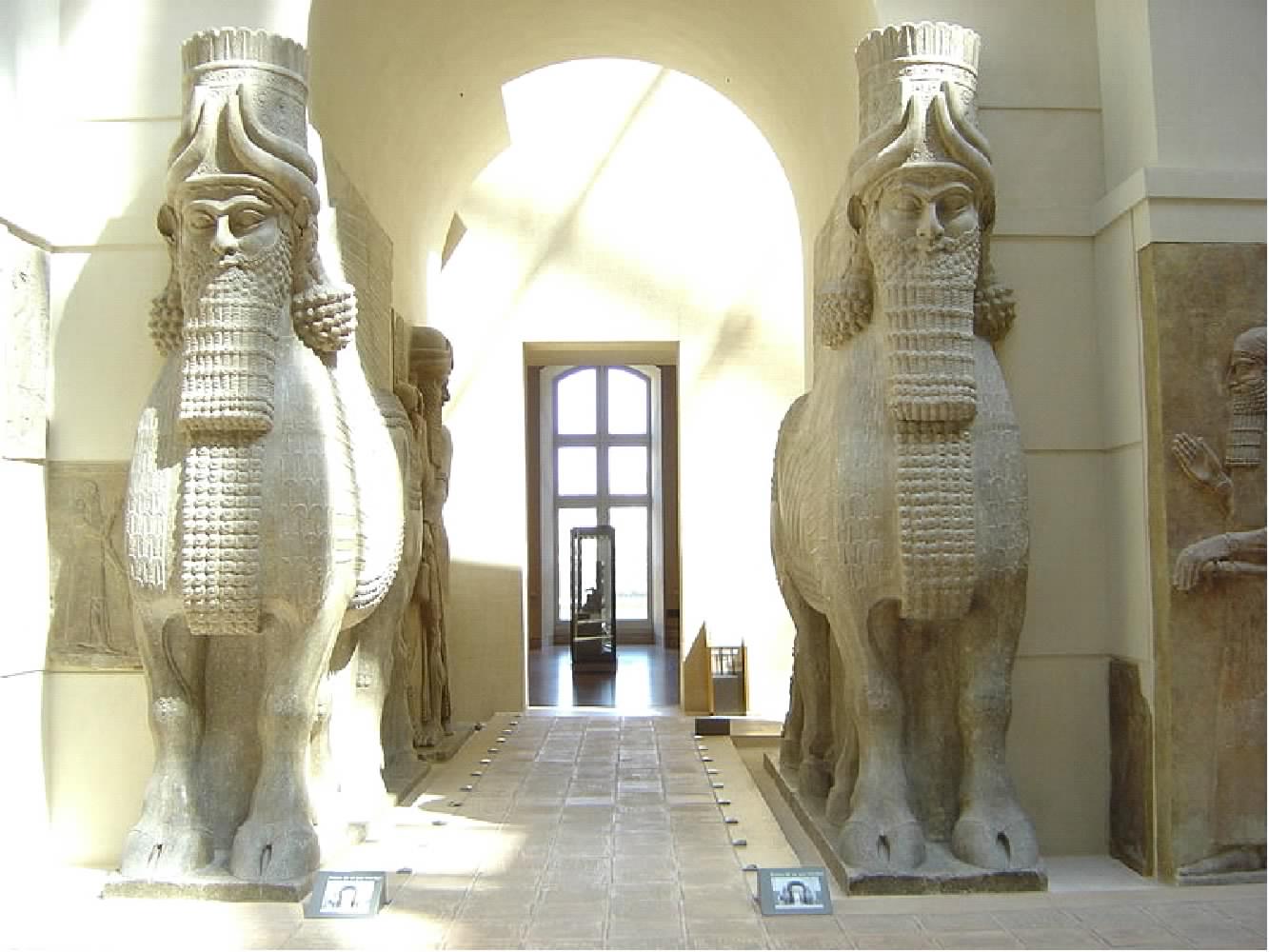 In other instances from the ancient world statues of winged bulls with human heads were carved into the facades of temples and palaces to symbolically guard the entranceways. Examples of this type of architecture are found in any major museum with a near-eastern collection throughout world. Below is a famous example from the Persian palace of Cyrus the Great now found in the Louvre.