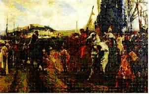 The Capitulation of Granada by F. Padilla: Muhammad XII before Ferdinand and Isabella
