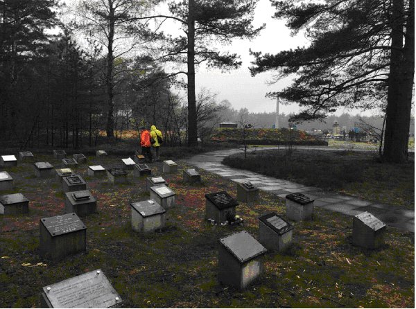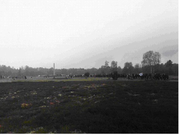 ![]() Burial Area On this cold and rainy day, thousands of people came to Belsen to remember and pay respect. In the twenty years since I was last at Belsen, the German Government has built a major interpretive museum and educational center at Belsen. The museum's presentations do not leave anything to the imagination. It does not gloss over or sanitize what happened there.