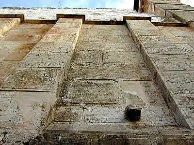 The other two cenotaphs, of Rebecca and Isaac, are in the Muslim section on the east side of the building. The Mamluk viceroy of Syria further adorned the two monuments and also covered the walls with geometric sheets of marble and the decorative Koranic script on the marble frieze. Next to the back wall, at the other end of Isaac's monument, the pavement slopes down into the Herodian rain gutter, which proves that the building was first uncovered.