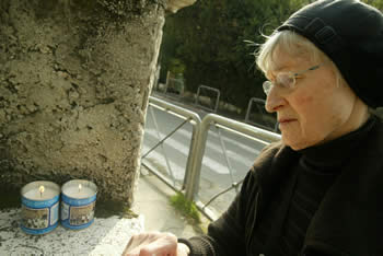 ![]() Mother Ruth Goldberg lighting Candle at the Place of the Suicide Murder Har Noff’s Rabbi David Orlovsky spoke last week at my brother’s anniversary Yartzeit addressing Chezi’s goodness, sharing the advice Chezi gave when booking him to speak at the 2004 February yartzeit for our father. “No downers, David, Inspire.” Rabbi Orlovsky instead spoke thirty days after my brother’s murder, Chezi’s shloshim, for the loss of his friend of 22 years, almost half their lifetimes. The rabbi, a smaller version of Chezi who God supersized, moved us forward one memory at a time, laughing so hard, tears streamed down our faces. On my brother’s Hebrew Yartzeit at Azza Street, the murder scene, an aging local resident approached me, my 74 year old Mom and my oldest son. The white haired gent looking at our memorial candles said, “Ein Brei-rah, we don’t have a choice.” Chezi didn’t.