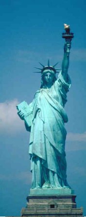 With conquering limbs astride from land to land; Here at our sea-washed, sunset gates shall stand A mighty woman with a torch, whose flame Is the imprisoned lightning, and her name Mother of Exiles. From her beacon-hand Glows world-wide welcome; her mild eyes command The air-bridged harbor that twin cities frame. "Keep, ancient lands, your storied pomp!" cries she With silent lips. "Give me your tired, your poor, Your huddled masses yearning to breathe free, The wretched refuse of your teeming shore. Send these, the homeless, tempest-tost to me, I lift my lamp beside the golden door!"